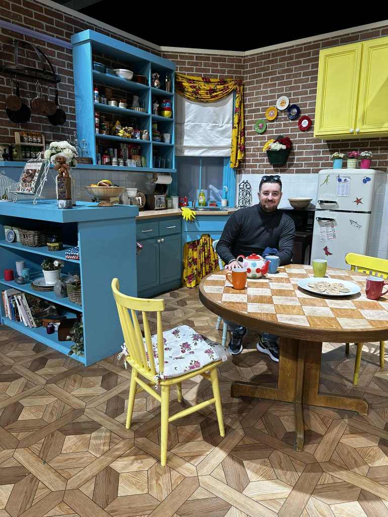- Life-sized sets: Monica’s kitchen, Joey and Chandler’s recliners, and of course Central Perk with the orange sofa.